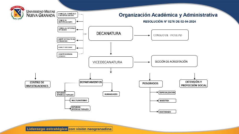 La Facultad de Educación y Humanidades de la Universidad Militar Nueva Granada cuenta con dos departamentos académicos que apoyan la formación integral y el desarrollo de proyectos de investigación, docencia y proyección social: