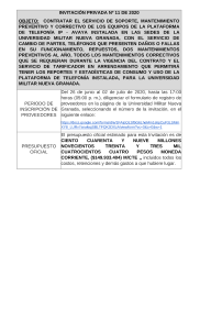 INVITACIÓN PRIVADA Nº 11 DE 2020 - CONTRATAR EL SERVICIO DE SOPORTE, MANTENIMIENTO PREVENTIVO Y CORRECTIVO DE LOS EQUIPOS DE LA PLATAFORMA DE TELEFONÍA IP - AVAYA INSTALADA EN LAS SEDES DE LA UNIVERSIDAD MILITAR NUEVA GRANADA, CON EL SERVICIO DE CAMBIO DE