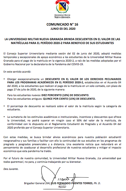 Protocolo para la prevención del coronavirus comunidad neogranadina