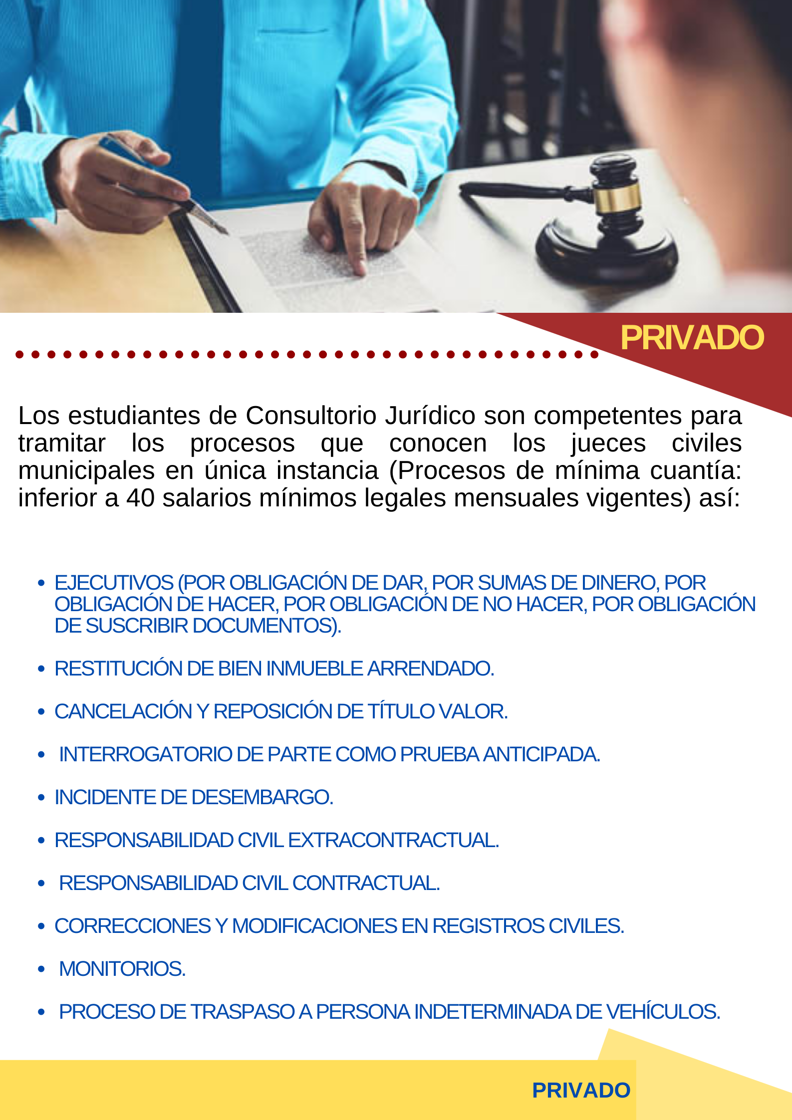 Temas en los que te puede ayudar el Consultorio Jurídico