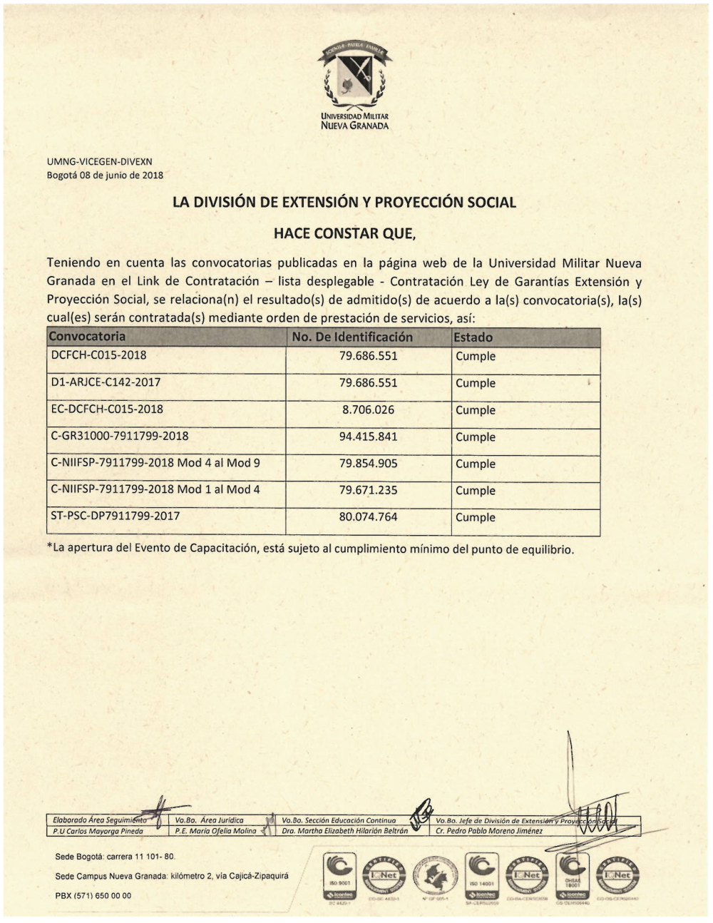 - División de Medio Universitario, Extensión y Proyección Social Campus NUeva Granada
