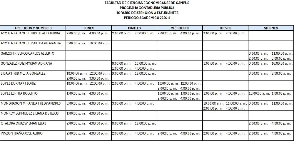 Horarios Atención a Estudiantes 2026-1